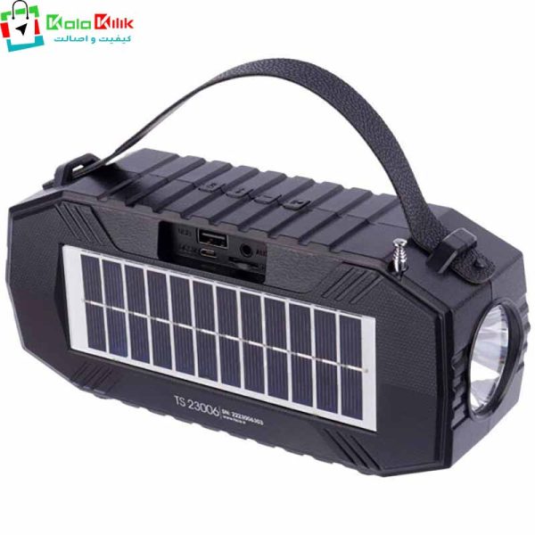 ایاقصد سفر کردن دارید و به به فکر خرید یک اسپیکر هستید. موسیقی معرفی کنیم.ما به شما اسپیکربلوتوثی تسکو مدل TS 23006 تسکو را پیشنهاد میکنیم.شرکت های تولیدکنده باند و لوازم صوتی تصویری در چند سال اخیر پیشرفت فوق العاده ای در زمینه ساخت و تولید اسپیکر های پورتابل و بلوثی کرده اند. تسکو اسپیکری راهی بازار کرده که در پشت اسپیکر پنل های خورشیدی تعبیه شده که انرژی مورد نیاز خود را در صورت نبود انرژی الکتریکی بتواند از طریق انرژی خورشیدی دریافت و تامین کند.شرکت تسکو این اسپیکر را تحت عنوان اسپیکر کمپینگ به بازار عرضه کرده است که برای سفر به طبیعت و نبود انرژی الکتریکی بتوان از این اسپیکر استفاده کرد.
