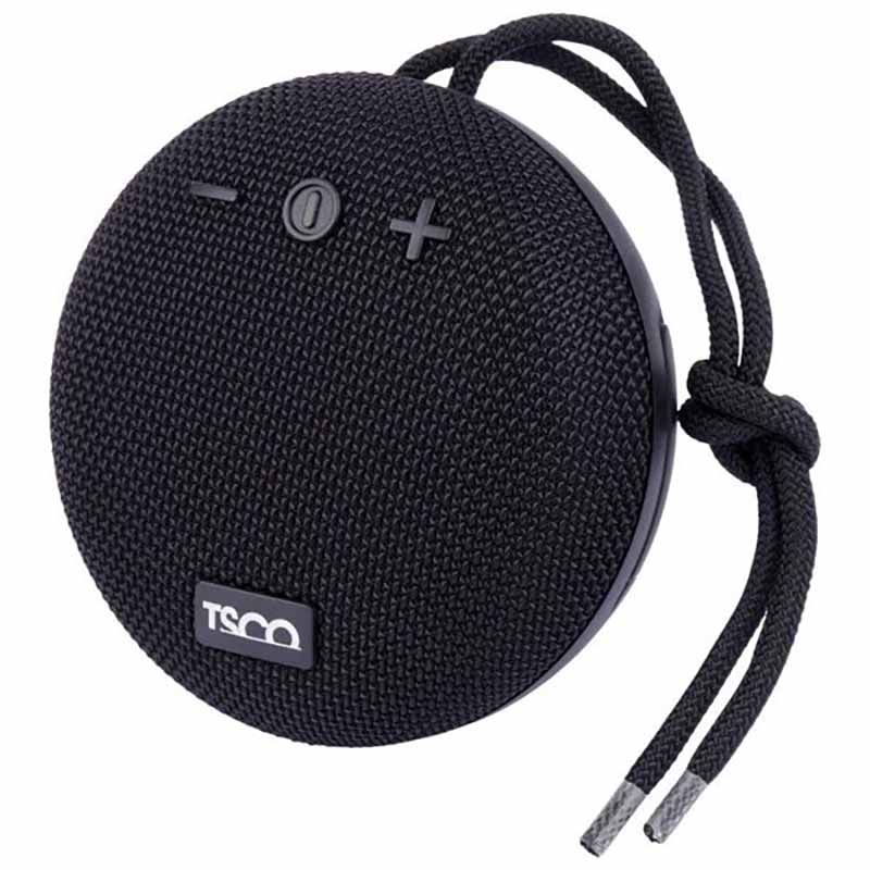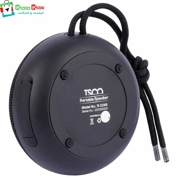 اسپیکر بلوتوثی تسکو مدل TS 23305کوچک و جذاب !اگر فضای کم و جایی برای نگه داشتن اسپیکر ندارید این اسپیکر را میتوانید خریداری کنید.ابعاد این اسپیکر ۴۶x۱۰۰.۸x۱۰۰.۸ میلی‌مترمیباشد که شکل این اسپیکر به صورت دایره ای شکل میباشد .در روی این بلندگو بلوتوثی 3 عدد دکمه جایگذاری شده دکمه های کم یه زیاد کردن صدا و و دکمه پاور. پورت های به کار  رفته در این اسپیکر یک درگاه تایپ و شیار کارت حافظه است.درگاه USB از این اسپیکر حذف شده است.مهم ترین قابلیت این اسپیکر خاصیت ضد اب بودن ان است که یک ویزگی مهم و جذاب برای یک اسپیکر بلوتوثی محسوب میشود.وزن این اسپیکر پورتابل 198 گرم میباشد که در اسپیکر های پرتابل اسپیکر سبکی محسوب میشود .