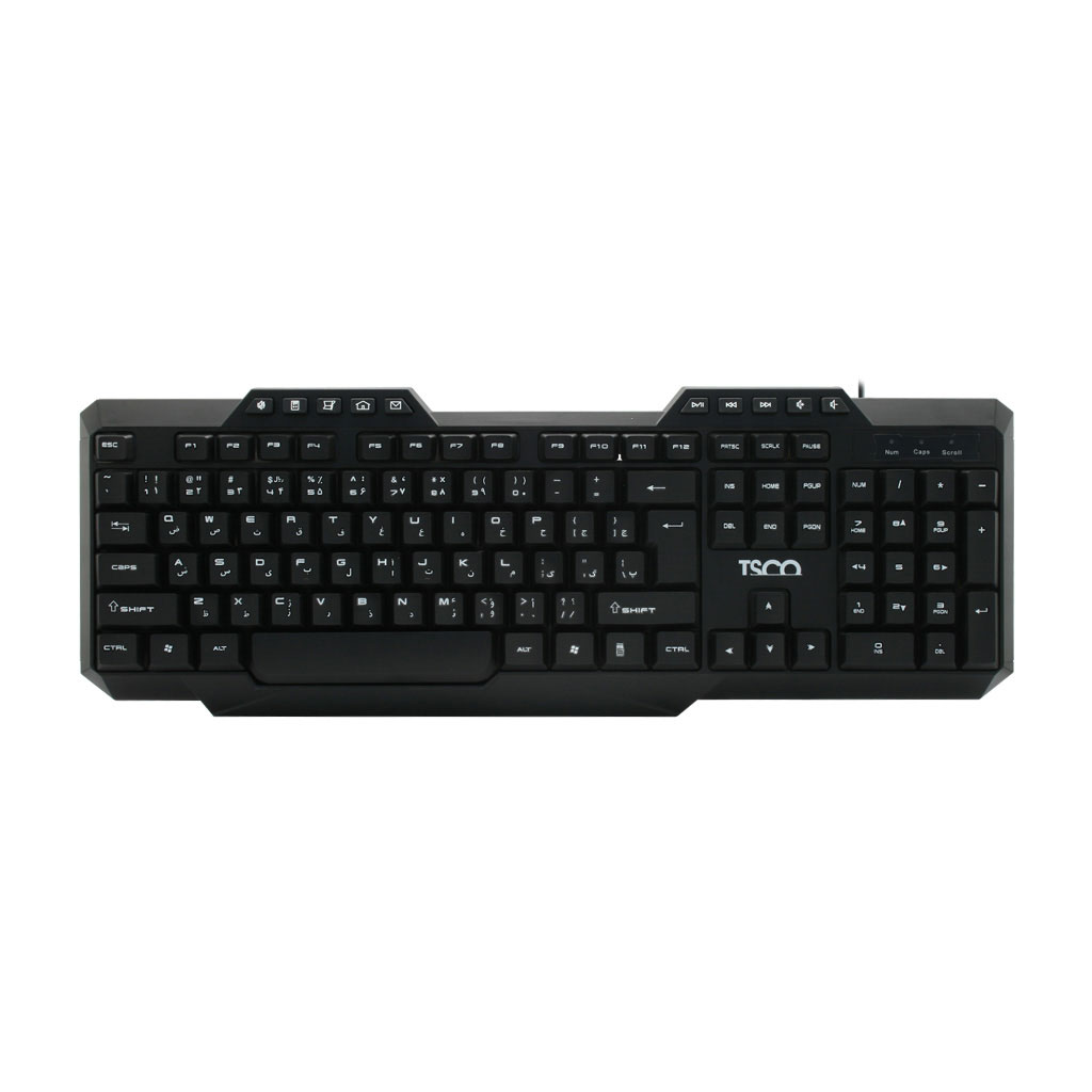 این کیبورد تسکو 104 کلید اصلی و 10 کلید میانبر دارد که شامل کم و زیاد کردن صدا و بی صدا کردن – پخش/توقف – ماشین حساب – ایمیل – خانه – مای کامیوتر – ترک بعد و قبل می شوند. نور پس زمینه این کیبورد ترکیبی است که علاوه بر زیبایی ظاهری چشم را دیرتر خسته میکند.